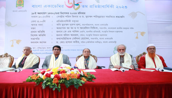 সকাল ১০:০০টায় কেন্দ্রীয় শহিদ মিনারে মহান ভাষা আন্দোলনের অমর শহিদদের স্মৃতির প্রতি এবং ১০:৩০টায় বাংলা একাডেমির স্বপ্নদ্রষ্টা ড. মুহম্মদ শহীদুল্লাহ্-র সমাধিতে শ্রদ্ধা নিবেদন করা হয়। বেলা ৩:০০টায় বাংলা একাডেমির রবীন্দ্র চত্বরে বঙ্গবন্ধুর শিক্ষাভাবনা শীর্ষক প্রতিষ্ঠাবার্ষিকী বক্তৃতা-২০২৩ প্রদান করেন বাংলাদেশ জাতীয় জাদুঘর পর্ষদ-এর সভাপতি অধ্যাপক আ আ ম স আরেফিন সিদ্দিক। স্বাগত ভাষণ প্রদান করেন একাডেমির মহাপরিচালক কবি মুহম্মদ নূরুল হুদা।