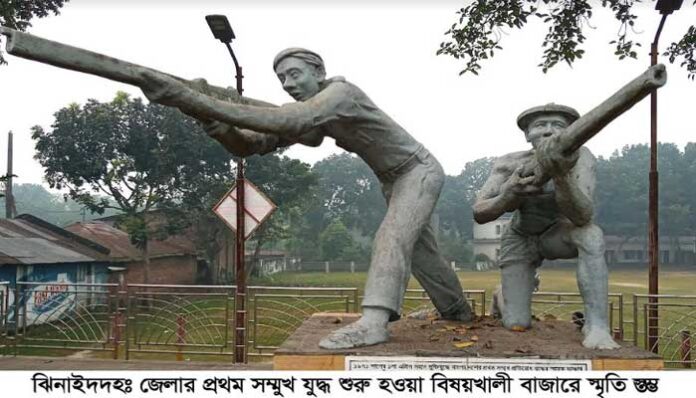 ঝিনাইদহ জেলা মুক্তিযোদ্ধা ইউনিটের সাবেক কমান্ডার মকবুল হোসেন জানান, ১৯৭১ সালের ১ এপ্রিল যশোর ক্যান্টোনমেন্ট থেকে ভারী অস্ত্র-সস্ত্রে সজ্জিত হয়ে পাকিস্থানি হানাদার বাহিনী ঝিনাইদহ দখলের উদ্দেশ্যে এগিয়ে আসতে থাকলে বিষয়খালী ব্রীজের এপার থেকে মুক্তিযোদ্ধারা তাদেরকে প্রবাল বাধা দেয়। প্রায় তিন ঘন্টা যুদ্ধের পর তারা পিছু হঠে যায়। ১৬ এপ্রিল হানাদার বাহিনী আবারো বিষয়খালী বেগবতী নদীর তীরে এসে মুক্তিযোদ্ধাদের প্রবল বাধার সম্মুখিন হয়। এখানে প্রায় ৬ ঘন্টা তুমুল যুদ্ধ হয়। এই যুদ্ধে ৩৫ জন মুক্তিযোদ্ধা শহীদ হন। ব্রীজের পাশেই তাদের গণ কবর দেওয়া হয়। এ থেকেই জেলায় ছড়িয়ে পড়ে মুক্তিযুদ্ধ। বিভিন্ন স্থানে তুমুল যুদ্ধ শুরু হয় মুক্তিযোদ্ধাদের সাথে। সে সময় উল্লেখযোগ্য যুদ্ধের মধ্যে ছিল বিষয়খালী যুদ্ধ, গাড়াগঞ্জ যুদ্ধ, শৈলকুৃপা থানা আক্রমন, কামান্না, আলফাপুর ও আবাইপুরের যুদ্ধ। ঝিনাইদহে জেলা মুক্তিযোদ্ধা সংসদ সুত্রে জানা গেছে, পহেলা থেকে ষোল এপ্রিল বিষয়খালী যুদ্ধে ৩৫ জন, ১৪ অক্টোবর আবাইপুর যুদ্ধে ৪১ জন, ২৬ নভেম্বর কামান্না যুদ্ধে ২৭ জনসহ স্বাধীনতা যুদ্ধে ঝিনাইদহ জেলায় ২৭৬ জন মুক্তিযুদ্ধা শহীদ হন। এর মধ্যে খেতাবপ্রাপ্ত মুক্তিযোদ্ধা রয়েছে এই জেলায় দুই জন। তাঁরা হলেন খোর্দখালিশপুরের বীর শ্রেষ্ঠ হামিদুর রহমান ও সাগান্না গ্রামের বীর প্রতিক সিরাজুল ইসলাম। শহীদ মুক্তিযোদ্ধাদের আনেককে বিভিন্ন স্থানে গণকবর দেওয়া হয়েছে। এদের মধ্যে আনেকের নাম ঠিকানা আজও মেলেনি।