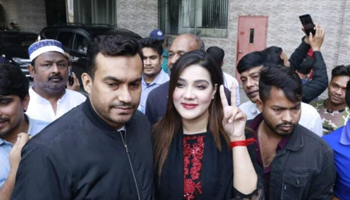 মনোনয়ন বৈধ ঘোষণার পর ইসি চত্বরে উল্লাসে ফেটে পড়েন মাহি। ফটোসাংবাদিকদের সামনে আঙুলে বিজয়সূচক চিহ্ন দেখিয়ে নিজের অভিব্যক্তি প্রকাশ করেন তিনি।