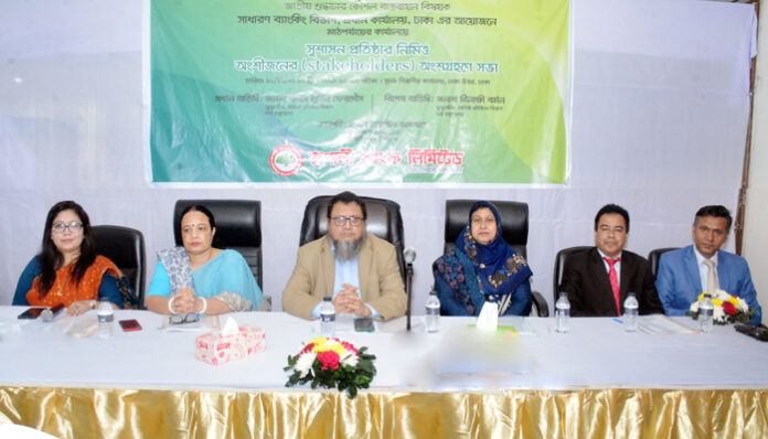 কর্পোরেট ডেস্ক: রূপালী ব্যাংকে জাতীয় শুদ্ধাচার কৌশল বাস্তবায়ন বিষয়ক এক সভা অনুষ্ঠিত হয়। মঙ্গলবার (১২ ডিসেম্বর) ব্যাংকের প্রধান কার্যালয়ের সাধারণ ব্যাংকিং বিভাগের আয়োজনে মাঠ পর্যায়ের ঢাকা উত্তর বিভাগীয় কার্যালয়ের কনফারেন্স রূমে সুশাসন প্রতিষ্ঠার জন্য অংশীজনের অংশগ্রহণে সভাটি অনুষ্ঠিত হয়।