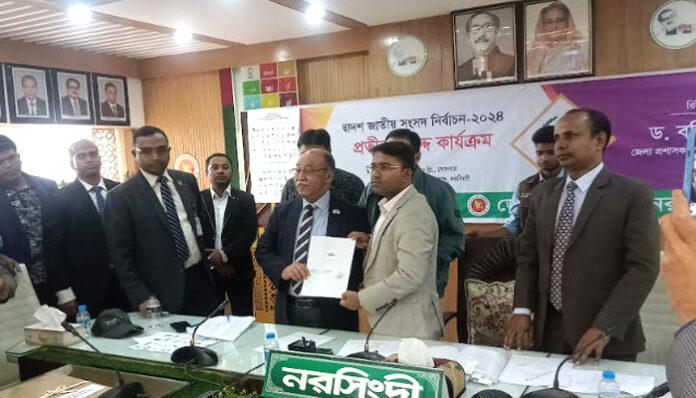 সাইফুল ইসলাম রুদ্র, নরসিংদী জেলা প্রতিনিধি: আসন্ন জাতীয় সংসদ নির্বাচনে নরসিংদীর ৫টি আসনে ৩৩ জন দলীয় ও স্বতন্ত্র প্রার্থীর মধ্যে প্রতীক বরাদ্দ দেয়া হয়েছে।