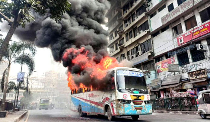 নিজস্ব প্রতিবেদক: রাজধানীর গুলিস্তানে যাত্রীবাহী বাসে অগ্নিসংযোগ করেছে দুর্বৃত্তরা। আজ মঙ্গলবার (১৯ ডিসেম্বর) দুপুরে মালঞ্চ পরিবহনের একটি বাসে অগ্নিসংযোগ করা হয়।