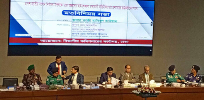 নিজস্ব প্রতিবেদক: আসন্ন দ্বাদশ জাতীয় সংসদ নির্বাচন উপলক্ষে আইনশৃঙ্খলা রক্ষাকারী বাহিনী ও মাঠ প্রশাসন কর্মকর্তাদের সঙ্গে নির্বাচন কমিশনের (ইসি) মতবিনিময় সভা শুরু হয়েছে। আজ বৃহস্পতিবার (২১ ডিসেম্বর) বেলা ১১টা ৫ মিনিটে নির্বাচন ভবনের অডিটোরিয়ামে এই সভা শুরু হয়। ঢাকা বিভাগীয় কমিশনারের কার্যালয় এই মতবিনিময় সভার আয়োজন করেছে।