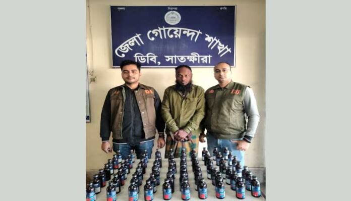 জেলা ডিবি পুলিশের অফিসার ইনচার্জ তারেক ফয়সাল ইবনে আজিজ জানান, গোপন সংবাদের ভিত্তিতে এস.আই, পিন্টু লাল দাস, এ.এস.আই মো. আবু সুফিয়ানের নেতৃত্বে ডিবি পুলিশের একটি আভিযানিক দল কলারোয়া উপজেলার বোয়ালিয়া মহিলা দাখিল মাদ্রাসার এলাকায় অভিযান চালিয়ে এক ব্যাক্তিকে আটক করা হয় ৷ এ সময় তার দেহ তল্লাশি করে ৭০ বোতল ফেন্সিডিল পাওয়া যায়। তার বিরুদ্ধে মাদকদ্রব্য নিয়ন্ত্রন আইনে মামলা দায়ের করে আসামীকে আদালতে পাঠানো হয়েছে।
