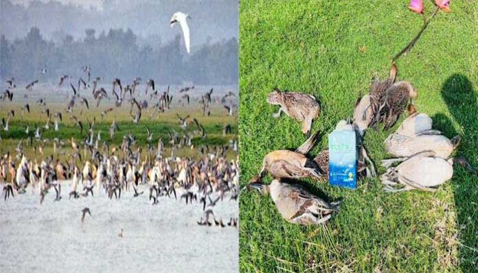 গত বুধবার মৌলভীবাজারের জুড়ী উপজেলার হাকালুকি হাওড়ের নাগুয়া ও চাতলার বিলে পাখি দেখতে ও ছবি তোলার জন্য আসেন ৪ জন আলেকচিত্রি তাঁরা হলেন সৈয়দ আব্দু, শাহানুল করিম চলপ, মো. রিজওয়ানুল করিম ও সুলতান আহমদ। তাঁরা একসময় উপস্তিত হোন নাগুয়া বিলের পাশে। হাঠাৎ, দেখেন নাগুয়া বিলের মোট ৩২ টি হাঁস পাখির মৃতদেহ। আশপাশে একটি দুটি করে ধুকে ধুকে মরছে আরো কয়েকটি পাখি। এগুলো বাংলাদেশের পরিযায়ী পাখি পিয়াং হাঁস ও উত্তুরে ল্যাঞ্জা হাঁস। পরিবেশের ভারসাম্য রক্ষার্থে মৃত পাখি গুলো মাটিচাপা দেন তাঁরা।