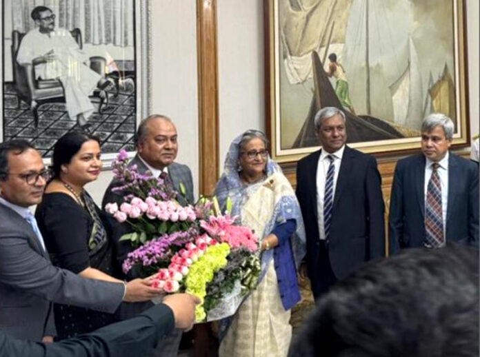 আজ মঙ্গলবার (৯ জানুয়ারি) গণভবনে প্রধানমন্ত্রীর সঙ্গে সৌজন্য সাক্ষাৎ করে এ অভিনন্দন জানানো হয়। এ সময় উপস্থিত ছিলেন বিএসইসির কমিশনার অধ্যাপক ড. শেখ শামসুদ্দিন আহমেদ, কমিশনার অধ্যাপক ডা. মিজানুর রহমান, কমিশনার আব্দুল হালিম ও কমিশন অধ্যাপক রুমানা ইসলাম।