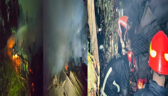 ঘরগুলো কাঠ ও বাঁশের তৈরি হওয়াতে মুহূর্তের মধ্যেই আগুন চারদিকে ছড়িয়ে পড়ে বলে জানান ফায়ার সার্ভিসের এ কর্মকর্তা।