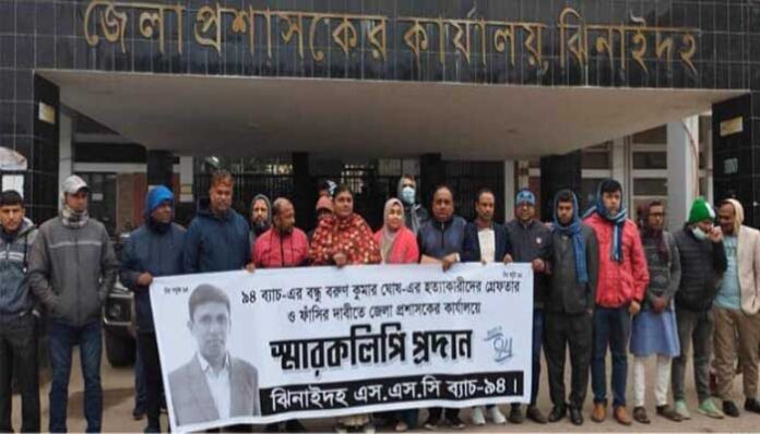 রোববার সকালে জেলা প্রশাসকের কার্যালয়ের সামনে এ কর্মসূচীর আয়োজন করে তার সহপাঠি ঝিনাইদহ এসএসসি ৯৪’ ব্যাচের শিক্ষার্থীরা।