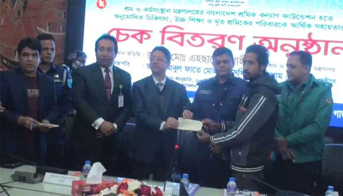 গাজীপুর প্রতিনিধি : গাজীপুরে শ্রম ও কর্মসংস্থান মন্ত্রণালয়ের বাংলাদেশ শ্রমিক কল্যাণ ফাউন্ডেশন হতে অনুমোদিত চিকিৎসা, উচ্চ শিক্ষা ও মৃত শ্রমিকের ২৩০টি পরিবারকে ৯১ লক্ষ ৭০ হাজার টাকার আর্থিক সহায়তার চেক বিতরণ করেছে।