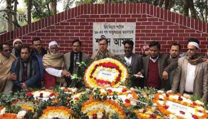 শহীদ আসাদের সমাধিস্থলে পুষ্পস্তবক অর্পণ করে শ্রদ্ধা নিবেদন করেন, নরসিংদী-৩ (শিবপুর) আসনের সংসদ সদস্য আলহাজ্ব সিরাজুল ইসলাম মোল্লা, শিবপুর মডেল থানা, শহীদ আসাদ কলেজিয়েট গার্লস হাইস্কুল অ্যান্ড কলেজের সাবেক অধ্যক্ষ ও ম্যানেজিং কমিটির সভাপতি আবুল হারিছ রিকাবদার, নরসিংদী জেলা আওয়ামী যুবলীগের সভাপতি বিজয় কৃষ্ণ গোস্বামী, সহসভাপতি সামসুল ইসলাম মোল্লা, উপজেলা আওয়ামী যুবলীগের সভাপতি মাহবুব আলম মোল্লা তাজুল, সাধারণ সম্পাদক শেখ কামালসহ বিভিন্ন সংগঠন ও প্রতিষ্ঠান।