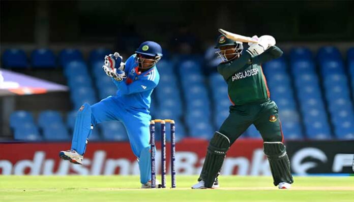 এদিন টস জিতে ফিল্ডিংয়ের সিদ্ধান্ত নেন বাংলাদেশের অধিনায়ক মাহফুজুর রহমান রাব্বি। অধিনায়কের সিদ্ধান্তটা শুরুর দিকে ভালোই কাজে লাগায় বাংলাদেশ। ভারতের দলীয় ৩১ রানের মাথাতেই তুলে নেয় দুটি উইকেট। ভারত শিবিরে প্রথম আঘাত হানেন মারুফ মৃধা। ৭ রান করা আর্শিন কুলকার্নিকে বিদায় করেন এই পেসার।