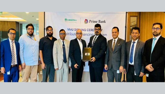 কর্পোরেট ডেস্ক: দেশের শীর্ষস্থানীয় বেসরকারি বাণিজ্যিক ব্যাংকগুলোর মধ্যে অন্যতম, প্রাইম ব্যাংক পিএলসি. সম্প্রতি ব্যাংকের প্রধান কার্যালয়ে আয়োজিত এক অনুষ্ঠানে আবেদিন ইকুইপমেন্ট লিমিটেড-এর ডিলারদের, বিশেষ করে এগ্রো মেশিনারিজ ডিলারদের ওয়ার্কিং ক্যাপিটালের প্রয়োজন মেটাতে আবেদিন ইকুইপমেন্ট লিমিটেড-এর সাথে একটি সমঝোতা চুক্তি স্বাক্ষর করেছে।