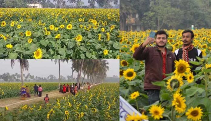 সেলিম রেজা, মেহেরপুর প্রতিনিধি : সবুজ গাছে হলুদ সূর্যমুখী, দুধারে নারকেল গাছের সারি। মেঠো পথ আর সবুজ ঘাসে ছাওয়া কিনারা। হলুদ আর সবুজ মিলে প্রকৃতির দৃষ্টিনন্দন সৌন্দর্য উপভোগ করতে ছুটে আসছে হাজারো মানুষ। কেউ করছেন পিকনিক, কেউ তুলছেন ছবি, কে করছেন নাটক আবার কেউ দু-চোখ মেলে উপভোগ করছেন অপার সৌন্দর্য ও সেলফিতে।