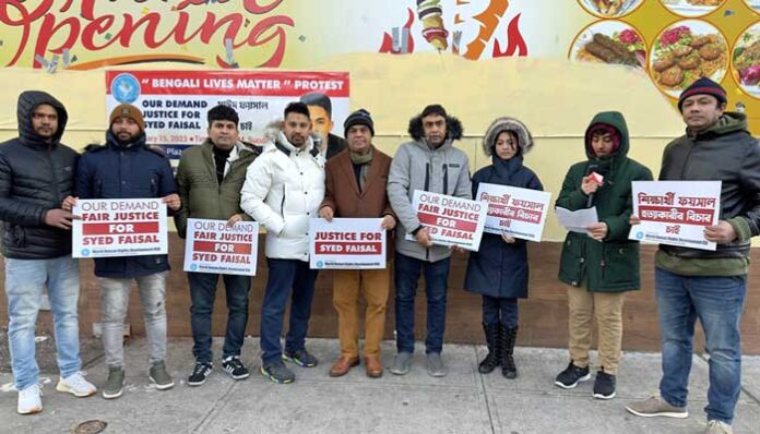 সাংবাদিক শহীদুল ইসলাম, পুলক মাহমুদ, কানু দত্ত, সরদার নুরুজ্জামান, ইঞ্জিনিয়ার হাসান, জেবিবিএর সহ-সাধারণ সম্পাদক মফিজুর রহমান উক্ত প্রতিবাদ সমাবেশে উপস্থিত ছিলেন।উল্লেখ্য, গত ৪ জানুয়ারি দুপুরে পুলিশের গুলিতে বাংলাদেশি বংশোদ্ভুত শিক্ষার্থী সাইদ আরিফ ফয়সাল (২০)কে লক্ষ্য করে ক্যামব্রিজে পুলিশ গুলি করলে সে ঘটনাস্থলেই জ্ঞান হারিয়ে ফেলেন। তাকে অ্যাম্বুলেন্সে করে বোস্টনের ম্যাসাচুসেটস জেনারেল হাসপাতালে ভর্তির পর সন্ধায় সে মারা যান। তবে পুলিশ ঘটনার পর থেকেই দাবি করে আসছে যে ফয়সালের হাতে একটা লম্বা ছুরি দেখতে পেয়ে তাকে সেটা নিচে ফেলে দিতে বলেন। কিন্তু সে পুলিশের দিকে ধেয়ে আসছিল ফলে পুলিশ তাকে গুলি করতে বাধ্য হন।