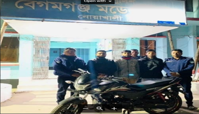 নোয়াখালী প্রতিনিধি: নোয়াখালীর বেগমগঞ্জে পেশাদার মোটরসাইকেল চোর চক্রের দুই সদস্যকে গ্রেপ্তার করেছে পুলিশ। অভিযানে একটি চোরাই মোটরসাইকেল উদ্ধার করা হয়।