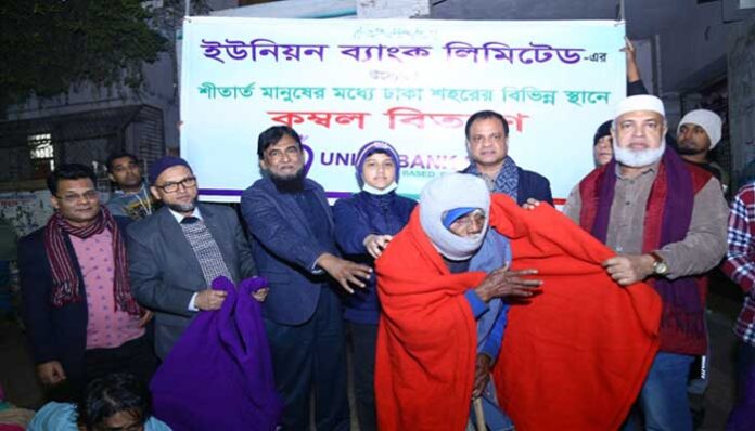 কর্পোরেট সংবাদ ডেস্ক : সামাজিক দায়বদ্ধতা কর্মসূচীর অংশ হিসেবে ইউনিয়ন ব্যাংক লিমিটেড মধ্যরাতে ঢাকা শহরের বিভিন্ন স্থানে দুঃস্থ, অসহায়, অসুস্থ ও শীতার্ত মানুষের মধ্যে কম্বল বিতরণ করে।