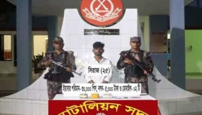 আটক মোঃ সিরাজুল ইসলাম (২৫), টেকনাফ বরইতলী গ্রামের মোহাম্মদ শাহ’র ছেলে।