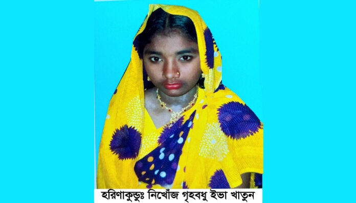 আতিকুর রহমান, ঝিনাইদহ প্রতিনিধিঃ ঝিনাইদহের হরিণাকুন্ডুতে চল্লিশ দিন ধরে ইভা খাতুন (২০) নামে এক গৃহবধূ নিখোঁজ রয়েছেন। গত বছরের ২৭ ডিসেম্বর হরিণাকুন্ডুর কুলবাড়িয়া গ্রামের শ্বশুর বাড়ি থেকে তিনি নিখোঁজ হন।
