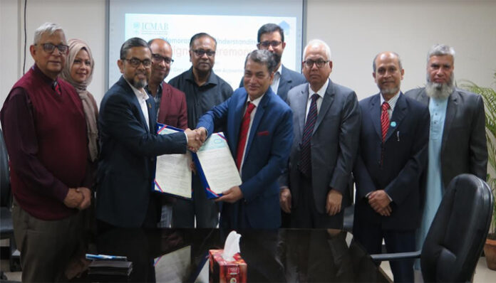 কর্পোরেট ডেস্ক: দি ইনস্টিটিউট অফ কস্ট অ্যান্ড ম্যানেজমেন্ট অ্যাকাউন্ট্যান্টস অফ বাংলাদেশ (ICMAB) এবং ইস্ট ওস্ট ইউনিভার্সিটি (EWU) একাডেমিক এবং পেশাগত দক্ষতা উন্নয়নে ঐকমত্যে পৌঁছেছে।