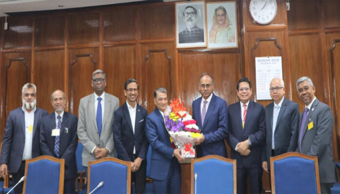 কর্পোরেট ডেস্ক: দি ইনস্টিটিউট অফ কস্ট অ্যান্ড ম্যানেজমেন্ট অ্যাকাউন্ট্যান্টস অফ বাংলাদেশ এর প্রেসিডেন্ট প্রফেসর ড. মোঃ সেলিম উদ্দিন এফসিএমএ এর নেতৃত্বে একটি প্রতিনিধিদল বুধবার (৭ ফেব্রুয়ারি) বাংলাদেশ ব্যাংকের গভর্নর আবদুর রউফ তালুকদারের সাথে সৌজন্য সাক্ষাৎ করেন।