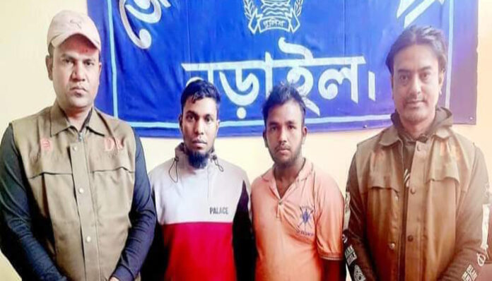 গ্রেফতারকৃত মো. আলাউদ্দিন শেখ (২৫) নড়াইল জেলার লোহাগড়া থানার লাহুড়িয়া ডহরপাড়া গ্রামের মৃত মইনুদ্দিন শেখের ছেলে এবং মো.আশিক শেখ (২৪) নড়াইল জেলার লোহাগড়া থানার ডিগ্রীরচর গ্রামের ওবায়দুল শেখের ছেলে।