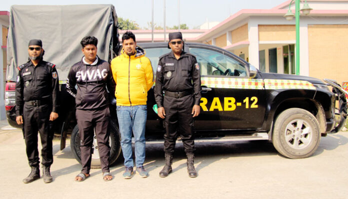 গ্রেপ্তারকৃতরা হলেন সিরাজগঞ্জ পৌরসভার সয়াধানগড়া মহল্লার মৃত আনছার আলীর পুত্র কামাল হোসেন (৩৫) ও লুৎফর রহমান লুতুর ছেলে ইমরান হোসেন (২২) এসময় তাদের কাছ থেকে ২টি মোবাইল ফোন জব্দ করা হয়।