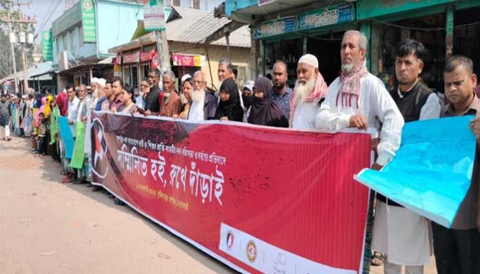 রোববার (১১ ফেব্রুয়ারি) দুপুরের দিকে সুবর্ণচরের মুজিব চত্বরে এ কর্মসূচির আয়োজন করে নোয়াখালী নারী অধিকার জোট।