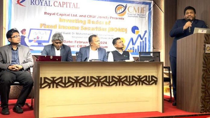 আজ সোমবার (১২ ফেব্রুয়ারি) ক্যাপিটাল মার্কেট জার্নালিস্টস ফোরাম (সিএমজেএফ) এবং রয়্যাল ক্যাপিটালের যৌথ উদ্যোগে আয়োজিত ‘ইনভেস্টিং বেসিকস অব ফিক্সড ইনকাম সিকিউরিটিজ’ শীর্ষক কর্মশালায় প্রধান অতিথির বক্তব্যে তিনি এসব কথা বলেন। রাজধানীর পুরানা পল্টনের আলরাজি কমপ্লেক্সে সিএমজেএফের অডিটোরিয়ামে কর্মশালাটি অনুষ্ঠিত হয়।
