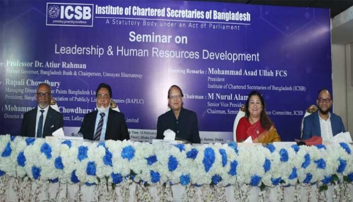 সোমবার (১২ ফেব্রুয়ারি) স্যামসন এইচ চৌধুরী সেন্টার, ঢাকা ক্লাব লিমিটেডে ইনস্টিটিউট অব চার্টার্ড সেক্রেটারীজ অব বাংলাদেশ (আইসিএসবি) কর্তৃক “নেতৃত্ব ও মানবসম্পদ উন্নয়ন” শীর্ষক সেমিনারে প্রধান অতিথির বক্তব্যে তিনি একথা বলেন।