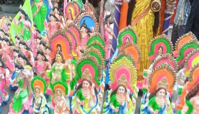 উজ্জ্বল রায়, জেলা প্রতিনিধি নড়াইল থেকে: নড়াইলে শহরের বিভিন্ন প্রান্তে সরস্বতী প্রতিমা বেচাকেনার ধুম তুলনামূলক ভাবে দাম বেশি। হিন্দু সম্প্রদায়ের অন্যতম ধর্মীয় উৎসব সরস্বতী পূজা অনুষ্ঠিত হবে বুধবার (১৪ ফেব্রুয়ারি)। আর তাকে কেন্দ্র করে নড়াইল শহরের বিভিন্ন প্রান্তে বেচাকেনা হচ্ছে প্রতিমা। আর তাই শেষ মুহূর্তে জমে উঠেছে সরস্বতী প্রতিমা বেচাকেনা।