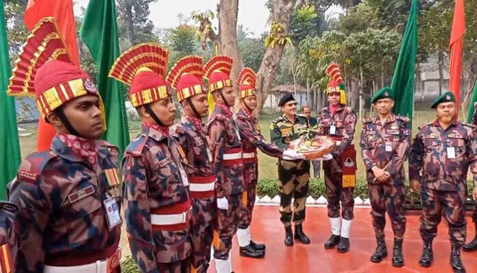এর আগে বেলা ১০ টার সময় বেনাপোল আইসিপি ক্যাম্প সংলগ্ন নোম্যান্সল্যান্ডে উভয় দেশের কর্মকর্তাদের উভয়ে ফুলের শুভেচ্ছা জানান। এরপর বেনাপোল কোম্পানি সদরে বিএসএফ প্রতিনিধিদের গার্ড অব অর্নার প্রদান করেনে বিজিবি‘র একটি সুসজ্জিত দল।