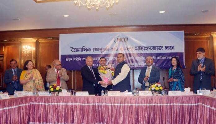 কর্পোরেট ডেস্ক: মেট্রপলিট্যান চেম্বার অফ কমার্স এণ্ড ইণ্ডাষ্ট্রী, ঢাকা (এমসিসিআই) কর্তৃক আয়োজিত বছরের প্রথম ত্রৈমাসিক মধ্যাহ্নভোজ সভা বুধবার (১৪ ফেব্রুয়ারি) চেম্বারের মতিঝিল অফিসে অনুষ্ঠিত হয়।