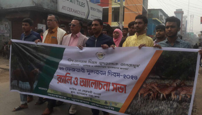 শহীদুজ্জামান শিমুল, সাতক্ষীরা প্রতিনিধি : “বিশ্ব ভালোবাসা দিবসে সুন্দরবনকে ভাল বাসুন, প্লাস্টিক ও পলিথিন মুক্ত সুন্দরবন জনপদ গড়ে তুলুন” এই প্রতিপাদ্যে সাতক্ষীরায় ১৪ ফেব্রুয়ারী সুন্দরবন দিবস হিসেবে জাতীয় ভাবে স্বীকৃতির দাবিতে র্যালী ও আলোচনা সভা অনুষ্ঠিত হয়েছে।