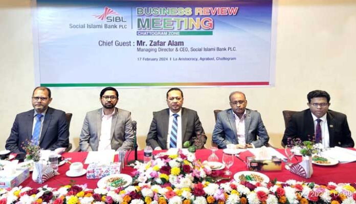 কর্পোরেট ডেস্ক : সোশ্যাল ইসলামী ব্যাংক- এর চট্টগ্রাম অঞ্চলের ‘‘বিজনেস রিভিউ মিটিং’’ শনিবার (১৭ ফেব্রুয়ারি) শহরের লা এ্যারিস্ট্রাক্রেসি হোটেলে অনুষ্ঠিত হয়েছে। অনুষ্ঠানে প্রধান অতিথি হিসেবে উপস্থিত ছিলেন ব্যাংকের ব্যবস্থাপনা পরিচালক ও প্রধান নির্বাহী জাফর আলম।