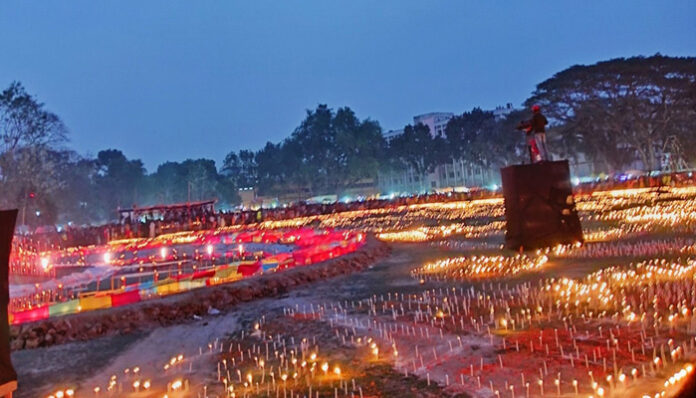 উজ্জ্বল রায়, জেলা প্রতিনিধি নড়াইল থেকে: নড়াইলে কুড়ির ডোপ মাঠে সূর্যাস্তের সঙ্গে সঙ্গে লাখো প্রদীপ জ্বালিয়ে ভাষা শহীদদের স্মরণ। নড়াইলে লাখো প্রদীপ জ্বালিয়ে ভাষা শহীদদের স্মরণ ব্যতিক্রমী আয়োজনের মধ্য দিয়ে ভাষা শহীদদের শ্রদ্ধা জানালেন নড়াইলবাসী।