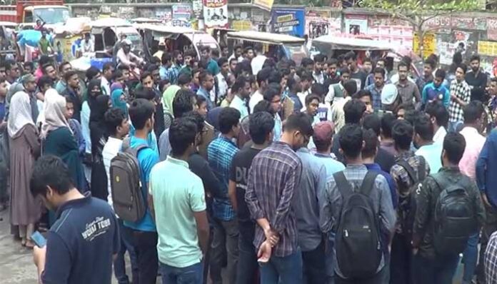 গাজীপুর প্রতিনিধি : গাজীপুরে সড়ক দুর্ঘটনায় ঢাকা প্রকৌশল ও প্রযুক্তি বিশ্ববিদ্যালয়ের শিক্ষক রাম কৃষ্ণ সাহা সহ দুজন নিহতের প্রতিবাদে সড়ক অবরোধ করে বিক্ষোভ করেছে শিক্ষার্থীরা।