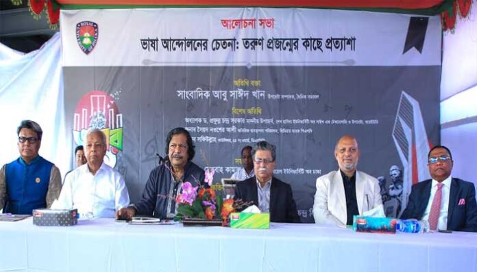 সাংবাদিক আবু সাঈদ খান বলেন, এদেশে ভাষাভিত্তিক জাতীয়তাবাদ বিকশিত হয়েছে। বৈষম্যহীন সমাজ ব্যবস্থা গড়ে তুলতে না পারলে একুশের চেতনা ম্লান হয়ে যাবে। উপাচার্য অধ্যাপক ড. মেসবাহ কামাল বলেন, অসাম্প্রদায়িক চেতনায় উজ্জীবিত হতে হবে তরুণ প্রজন্মকে। সংখ্যার বিবেচনায় নয় বরং মানুষ হিসেবে সকল মানুষের সমঅধিকার নিশ্চিত করতে না পারলে গণতন্ত্র প্রতিষ্ঠা হবে না। বিশ্ববিদ্যালয় শিক্ষার্থীদেরকে পৃথিবীর সকল মাতৃভাষার প্রতি শ্রদ্ধাশীল হতে হবে। এ প্রসঙ্গে তিনি আরো বলেন, বাংলাদেশের প্রধানমন্ত্রী জননেত্রী শেখ হাসিনার দিকনির্দেশনায় ইতিমধ্যেই ৫০টি জাতিসত্ত্বা বাংলাদেশে স্বীকৃত হয়েছে বাংলাদেশে। তিনি আরো বলেন, একুশ আমাদের সেই বিশ্বাস, যে বিশ্বাস নিয়ে আমরা জাতীয় সকল সংগ্রামে নির্ভয়ে লড়াই করে জয়ী হয়েছি। আমরা যেন আমাদের অস্তিত্বকে কখনো ভুলে না যাই।