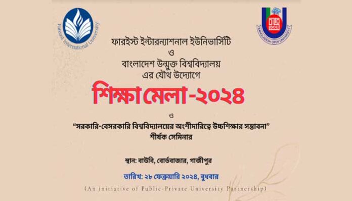 কর্পোরেট ডেস্ক: বুধবার (২৮ ফেব্রুয়ারি) ফারইস্ট ইন্টারন্যাশনাল ইউনিভার্সিটি ও বাংলাদেশ উম্মুক্ত বিশ্ববিদ্যালয়ের যৌথ উদ্যোগে বাউবির গাজীপুরস্থ ক্যাম্পাসে বঙ্গমাতা বেগম ফজিলাতুন্নেছা সম্মেলন ও প্রশিক্ষণ কেন্দ্র প্রাঙ্গণে “শিক্ষামেলা” আয়োজন করা হয়েছে।