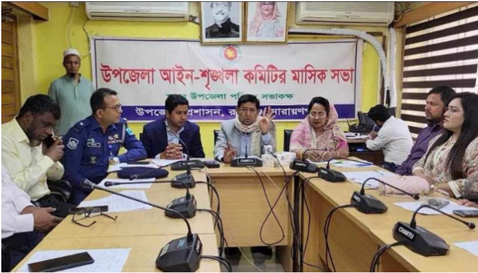 মো: রাসেদুল ইসলাম, স্টাফ রিপোর্টার: রূপগঞ্জে উপজেলা আইন-শৃঙ্খলা কমিটির মাসিক সভা অনুষ্ঠিত হয়েছে। মঙ্গলবার (২৭ ফেব্রুয়ারি) সকালে রুপগঞ্জ উপজেলার সভা কক্ষে এই আইন-শৃঙ্খলা কমিটির মাসিক সভা অনুষ্ঠিত হয়। উক্ত আইন-শৃঙ্খলা কমিটির মাসিক সভায় সভাপতিত্ব করেন রূপগঞ্জ উপজেলা নির্বাহী অফিসার মোঃ- আহসান মাহমুদ রাসেল।