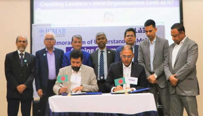 আইসিএমএবি এর নির্বাহী পরিচালক (অতি. দায়িত্বে) ড. মোহাম্মাদ জাকারিয়া মাসুদ এফসিএমএ ও ল্যাবএইড হাসপাতালের সিইও আহমেদ দাউদ এফসিএ, এফসিএমএ সমঝোতা স্মারকটি স্বাক্ষর করেন।