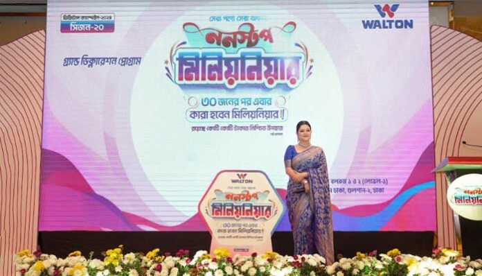 জানান, সারাদেশে ইতোমধ্যে ক্যাম্পেইনের ১৯টি সিজন বেশ সফলভাবে সম্পন্ন হয়েছে। প্রতিটি সিজনেই গ্রাহকদের কাছ থেকে পেয়েছি অভূতপূর্ব সাড়া। এরই প্রেক্ষিতে আসন্ন ঈদকে সামনে রেখে শুরু করা হয়েছে সিজন-২০। এর আওতায় ক্রেতাদের জন্য ‘ননস্টপ মিলিয়নিয়ার’ হওয়ার সুবিধা দিচ্ছে ওয়ালটন। পূর্বের মতো ক্যাম্পেইনের এই সিজনও শতভাগ সফল হবে বলে আমার দৃঢ় বিশ্বাস।