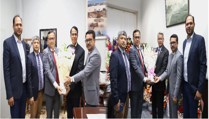 কর্পোরেট ডেস্ক : বাংলাদেশ ব্যাংকের নতুন ডেপুটিগভর্নর মোঃ খুরশীদ আলম এবং ড. মোঃ হাবিবুর রহমানকে এসবিএসি ব্যাংক পিএলসি.-এর পক্ষ থেকে বৃহস্পতিবার (২৯ ফেব্রুয়ারি) কেন্দ্রীয় ব্যাংকে তাদের দফতরে ফুল দিয়ে অভিনন্দন ও শুভেচ্ছা জানান ব্যাংকের ব্যবস্থাপনা পরিচালক ও প্রধান নির্বাহী হাবিবুর রহমান।
