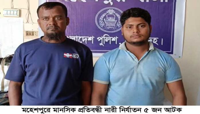 আতিকুর রহমান, ঝিনাইদহ জেলা প্রতিনিধি: ঝিনাইদহের মহেশপুরে মানসিক প্রতিবন্ধী নারীকে অমানসিক নির্যাতন করার ঘটনায় ৫ জনকে আটক করেছে পুলিশ। সোমবার রাতে উপজেলার খোশালপুর গ্রাম থেকে নির্যাতনকারী ওই ৫ জনকে আটক করা হয়।