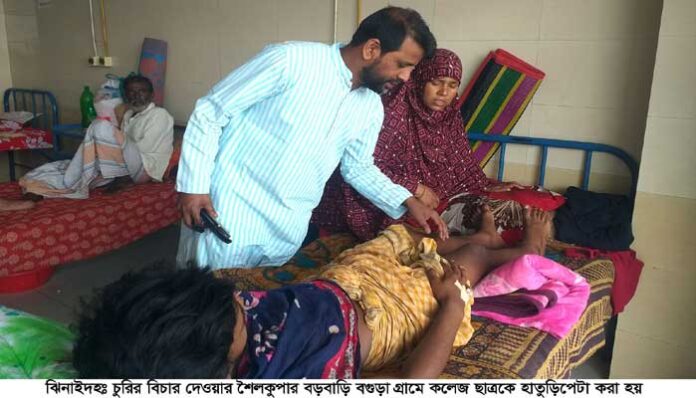 আতিকুর রহমান ঝিনাইদহ জেলা প্রতিনিধি: ঝিনাইদহের শৈলকুপায় চুরির অভিযোগ করায় রাকিন আহম্মেদ নামের এক কলেজ ছাত্রকে হাতুড়ি পেটা করা হয়েছে। বর্তমানে ওই কলেজ ছাত্র ঝিনাইদহ সদর হাসপাতালে চিকিৎসাধীন রয়েছে।