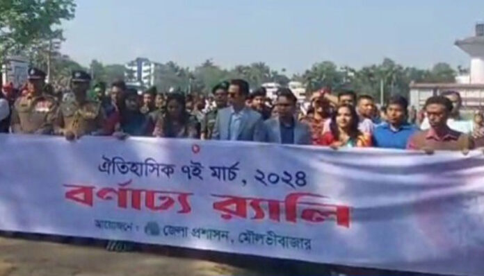 তিমির বনিক, স্টাফ রিপোর্টার: বন্যাঢ্য আয়োজনের মধ্য দিয়ে ঐতিহাসিক বৃহস্পতিবার (৭ই মার্চ) পালিত হয়েছে মৌলভীবাজারে সকাল সাড়ে ৯ টায় একে একে ফুল দিয়ে শ্রদ্ধা জানান।