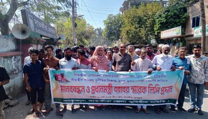 রোববার (১০ মার্চ) বেলা ১১টায় সাতক্ষীরা জেলা প্রেসক্লাবের সামনে জেলা ভূমিহীন সমিতির আয়োজনে এই মানববন্ধন পালিত হয়।