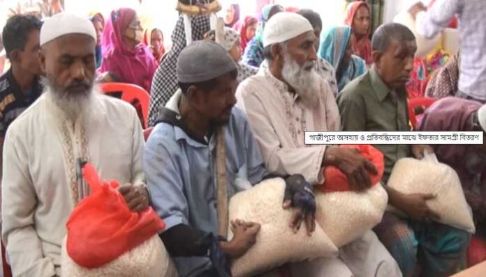 রবিবার (১০ মার্চ )বিকেলে গাজীপুর কোনাবাড়ি মধুমতি ইলেক্ট্রিনিক্স এর সত্ত্বাধিকারী মোঃ সেলিম শেখ এসব ইফতার সামগ্রী বিতরণ করেন । সেলিম শেখের নিজস্ব অর্থ তহবিল থেকে অসহায় নারী শ্রমিকদের মাঝে ইফতার সামগ্রী হিসেবে মুড়ি, ছোলাবুট, খেজুর , সোয়াবিন তেল বিতরণ করা হয় ।