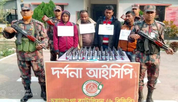 আটককৃতরা হলেন- জয়নগর গ্রামের ইজাজুল হকের ছেলে জিয়ারুল ইসলাম (২১), মৃত আলামিন শেখের ছেলে হাসমত আলী (৩৫), দিল মোহাম্মদের ছেলে মাহবুবুর রহমান (২৬), আইয়ুব আলীর ছেলে লাল্টু শেখ (৩৬), ও আজল আলীর ছেলে মিনারুল ইসলাম (২৩)।