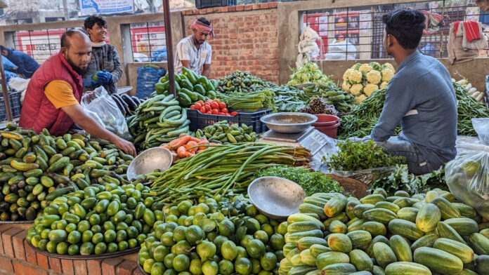অন্যদিকে মিষ্টি কুমড়া প্রতি কেজি ৩০, জালি কুমড়া প্রতি পিস ৪০ থেকে ৫০ টাকায়, বাঁধা কপি প্রতি পিস ৪০ টাকা, লাউ প্রতি পিস ৬০, ঢেঁড়স প্রতি কেজি ৮০, শিম প্রতি কেজি ৪০ টাকা, পেঁপে প্রতি কেজি ৪০ টাকা এবং আলু প্রতি কেজি ৪০ টাকায় বিক্রি হচ্ছে।