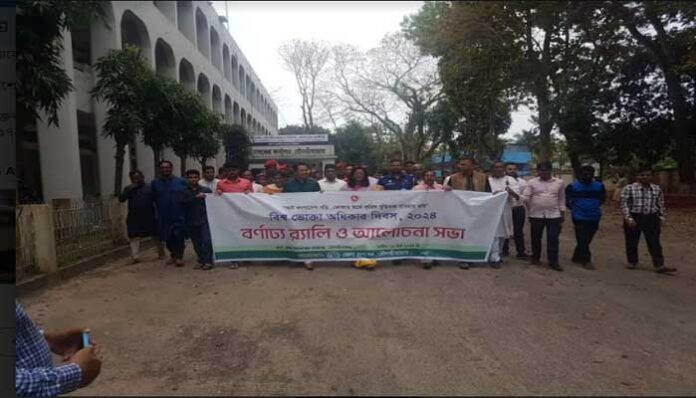 শুক্রবার (১৫ই মার্চ) সকালে জেলা প্রশাসনের আয়োজনে ও জাতীয় ভোক্তা অধিকার সংরক্ষণ অধিদপ্তর জেলা কার্যালয়ের সহযোগীতায় জেলা প্রশাসকের কার্যালয় থেকে একটি বর্ণাঢ্য র্যালী বের হয়। পরে জেলা প্রশাসকের সম্মেলন কক্ষে এক আলোচনা সভা অনুষ্ঠিত হয়।